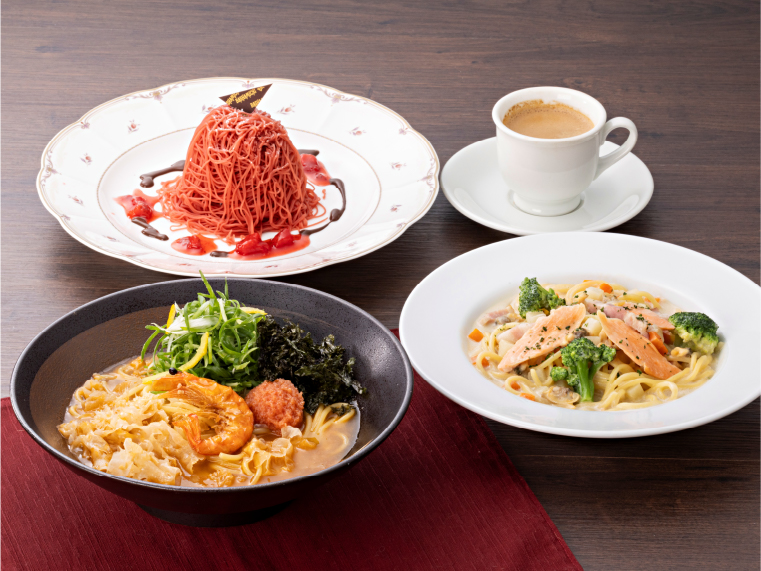馬車道は、文明開化のハイカラな意匠を凝らしたレストラン。店内に入ると明治時代の女学生をイメージした、矢絣模様の和服を着た「すみれ女史」がお出迎え。自慢のスパゲッティやハンバーグを、古き良き異空間でお楽しみください。