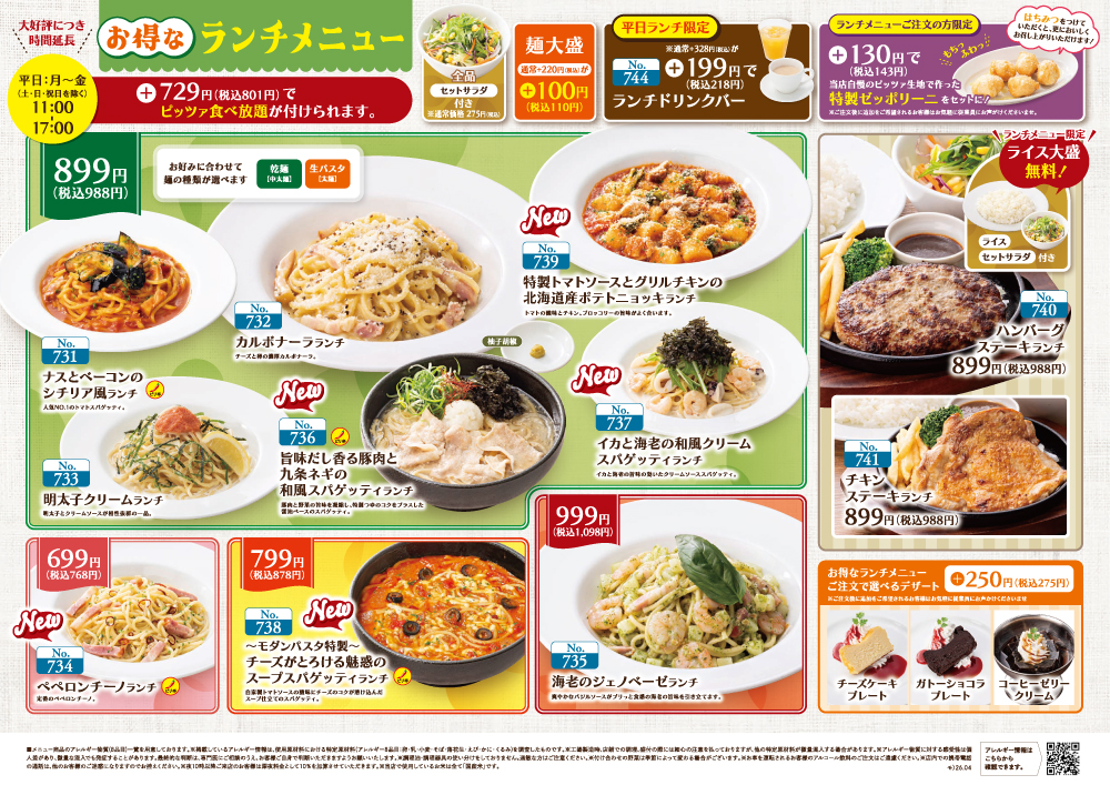 2026年4月23日(木)モダンパスタ一部店舗(新座店、成田店、杉戸店)限定で、グランドメニューが新しくなりました。